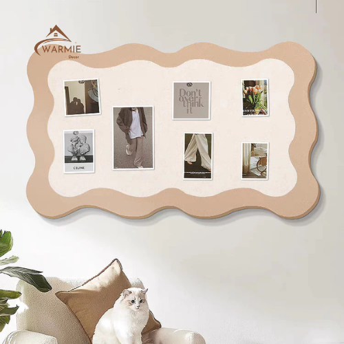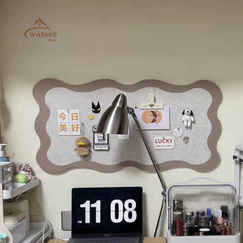Bảng nỉ dán tường uốn lượn phong cách INS với thiết kế viền mềm mại, màu sắc trung tính, dễ phối nhiều không gian.